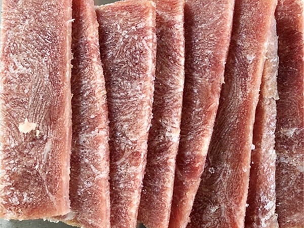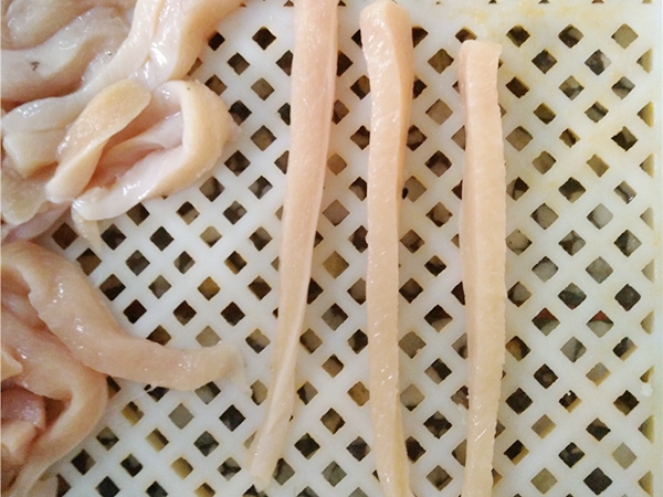 雞胸肉 豆腐切得非常的整齊,,肉片形狀切得也非常正規,適合做肉鋪的寶寶們哦~