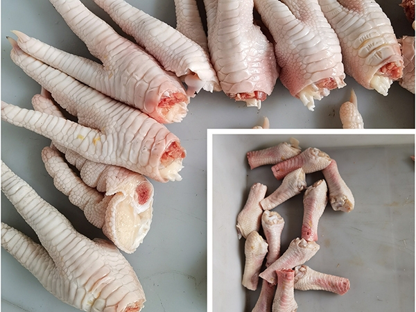 雞爪分切機就是將完整的雞腳掌切割成為雞掌和桿兩部分,用于后期雞爪的加工使用。切割準確,切面整齊,不產生骨屑;放料簡單方便;切割速度可調,走位準確穩(wěn)定,可配套流水線生產;與產品接觸部件均符合國家食品衛(wèi)生標準。