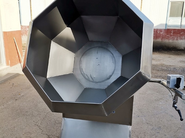 同普生產的八角調味機設計為八角造型,避免了圓球調味機原料不的弊端,充分攪拌原料調味均勻,并且調味機筒內沒有死角、衛生清理方便,可以扳倒出料,使用方便。